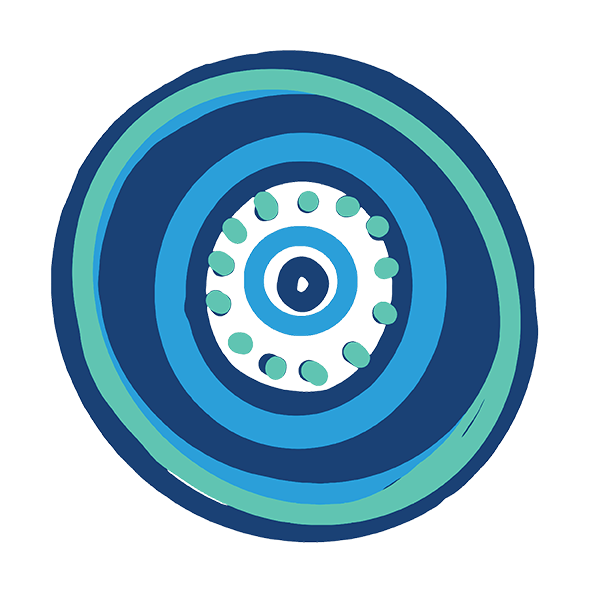 The meeting place and songlines symbolise the relationships we build with communities and elders, while symbols of land and sea connect our stories across Country and our place in Queensland.