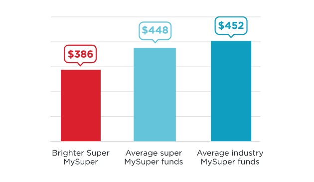 Brighter Super analysis conducted for 31 December 2025 of SuperRatings SMART Portal fee data, accessed on 22 January 2026. Analysis compares the Total Fee, based on a $50,000 super balance, and considers SuperRatings SR MySuper Index. Average industry fund considers industry funds with no joining restrictions. For more information on the SuperRatings research methodology visit www.superratings.com.au.