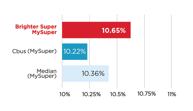 1 Investment Return information sourced via SuperRatings Accumulation Fund Crediting Rate Survey SR50 MySuper Index for the period to 30 September 2025. Investment returns are not guaranteed and are only one factor to be considered when deciding whether to invest. Past performance is not a reliable indicator of future performance. For more information on the SuperRatings research methodology visit www.superratings.com.au.